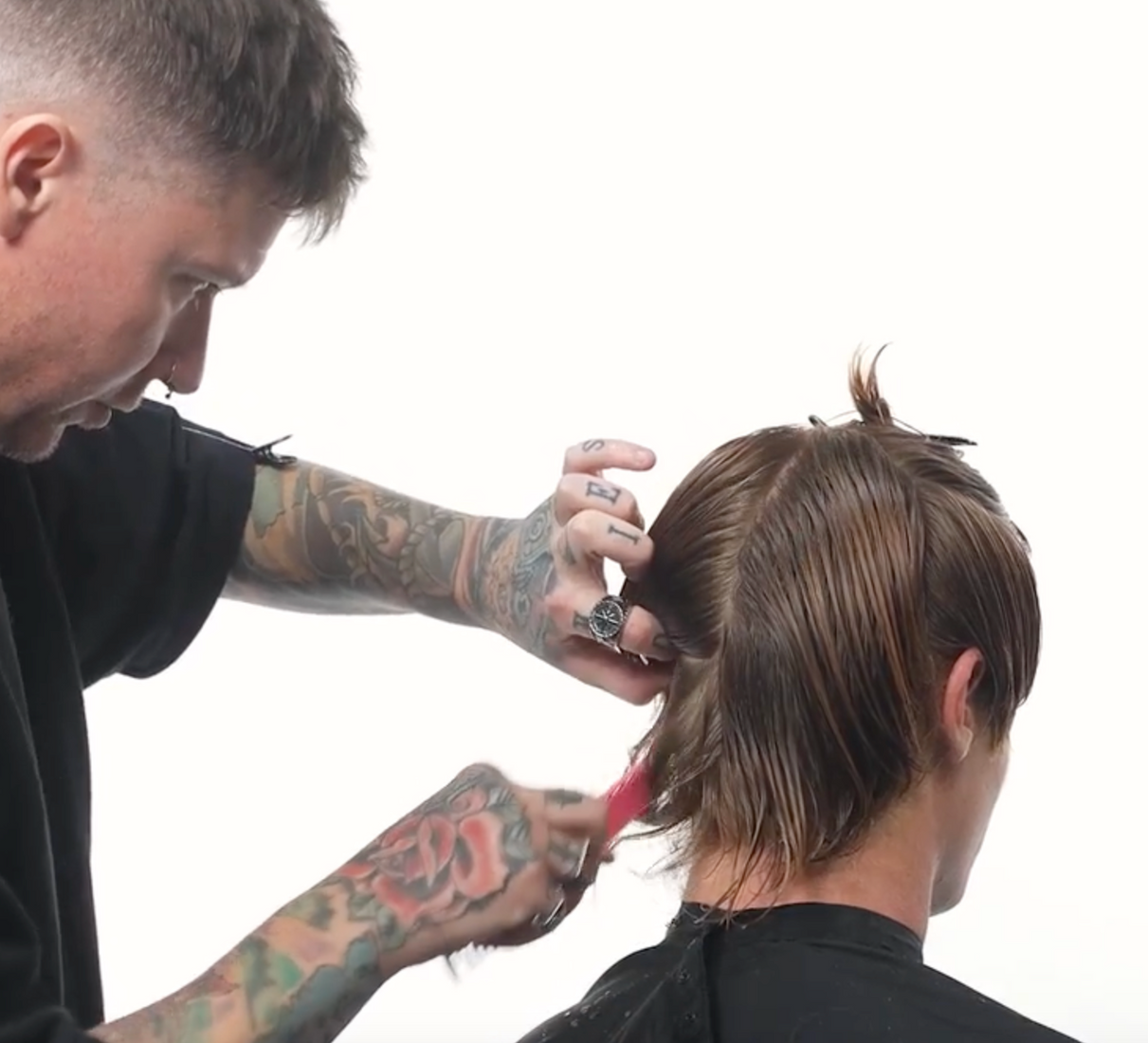 In PART 1 he is attacking the back with a razor and then into the sides using his scissors.